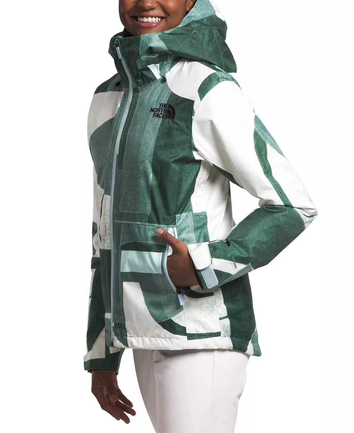 - Underarm venting for temperature regulation; drawcord at hem for adjustability; ticket-attachment loop at front-right hem; powder skirt with gripper elastic